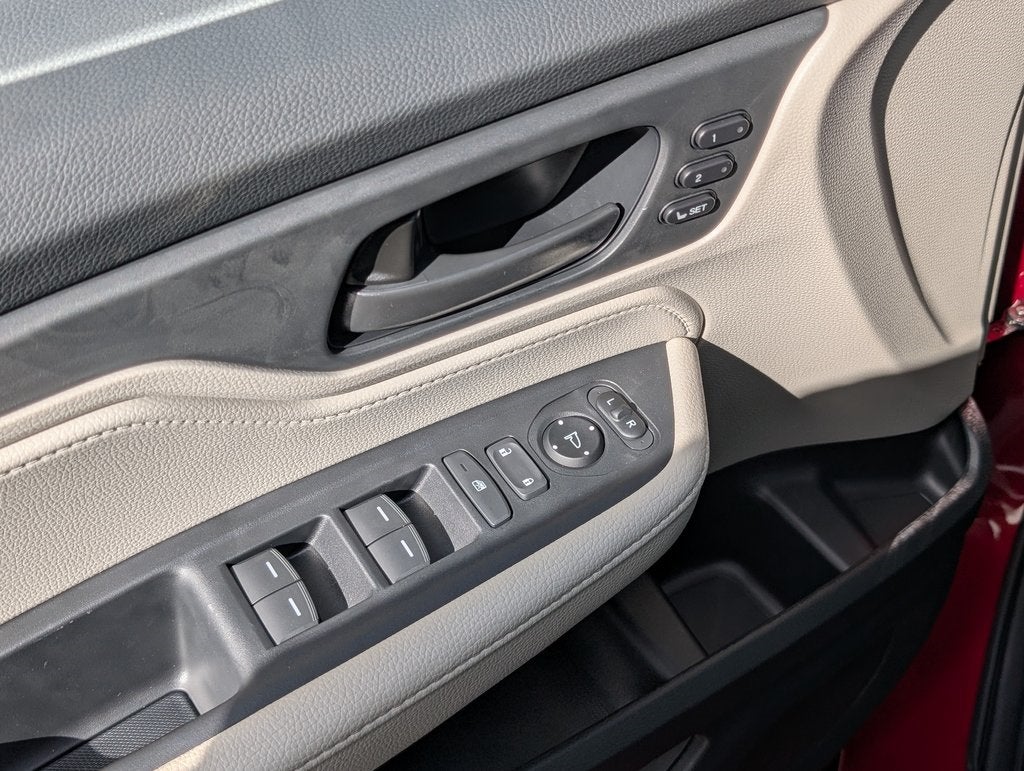 18 Machine-Finished Alloy Wheels, 3rd row seats: split-bench, 4-Wheel Disc Brakes, 7 Speakers, ABS brakes, Adaptive Cruise Control: Adaptive Cruise Control (ACC) with Low-Speed Follow, Air Conditioning, Alloy wheels, AM/FM radio: SiriusXM, Anti-whiplash front head restraints, Apple CarPlay/Android Auto, Auto High-beam Headlights, Auto-dimming Rear-View mirror, Automatic temperature control, Blind Spot Information (BSI) System warning, Brake assist, Bumpers: body-color, Delay-off headlights, Driver door bin, Driver vanity mirror, Driver's Seat Mounted Armrest, Dual front impact airbags, Dual front side impact airbags, Electronic Stability Control, Exterior Parking Camera Rear, Four wheel independent suspension, Front anti-roll bar, Front Bucket Seats, Front dual zone A/C, Front fog lights, Front reading lights, Fully automatic headlights, Garage door transmitter: HomeLink, Heated door mirrors, Heated Front Bucket Seats, Heated front seats, Illuminated entry, Knee airbag, Lane departure: Lane Keeping Assist System (LKAS) active, Leather steering wheel, Leather Trimmed Seats, Low tire pressure warning, Memory seat, Occupant sensing airbag, Outside temperature display, Overhead airbag, Overhead console, Panic alarm, Passenger door bin, Passenger seat mounted armrest, Passenger vanity mirror, Power door mirrors, Power driver seat, Power Liftgate, Power moonroof, Power passenger seat, Power steering, Power windows, Radio data system, Radio: 160-Watt AM/FM/HD/SiriusXM Audio System, Rear air conditioning, Rear anti-roll bar, Rear reading lights, Rear seat center armrest, Rear window defroster, Rear window wiper, Reclining 3rd row seat, Remote keyless entry, Security system, Speed control, Speed-sensing steering, Speed-Sensitive Wipers, Split folding rear seat, Spoiler, Steering wheel mounted audio controls, Tachometer, Telescoping steering wheel, Tilt steering wheel, Traction control, Trip computer, Turn signal indicator mirrors, and Variably intermittent wipers. 19/28 City/Highway MPG