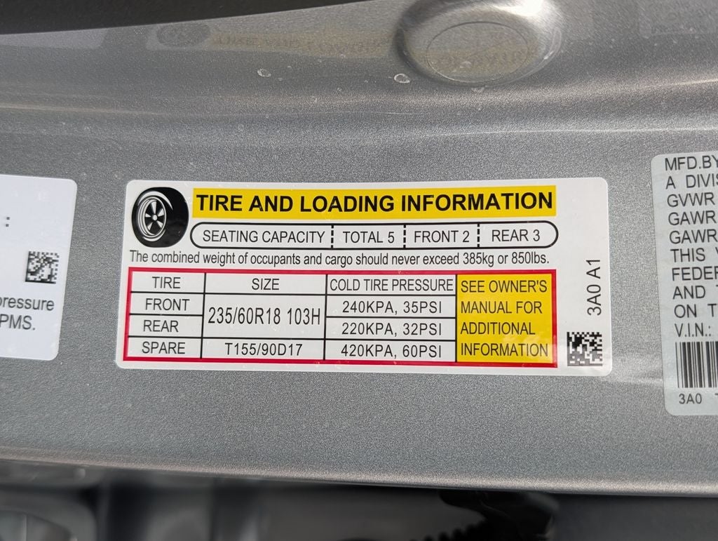 - Tires: 235/60R18 103H All-Season