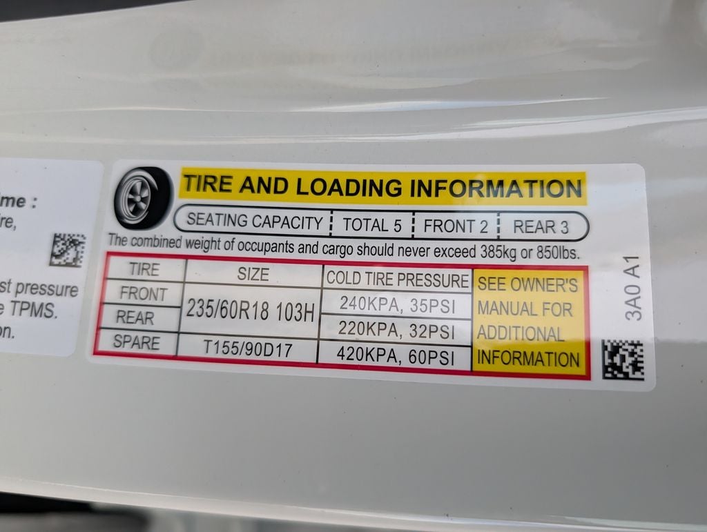 - Tires: 235/60R18 103H All-Season