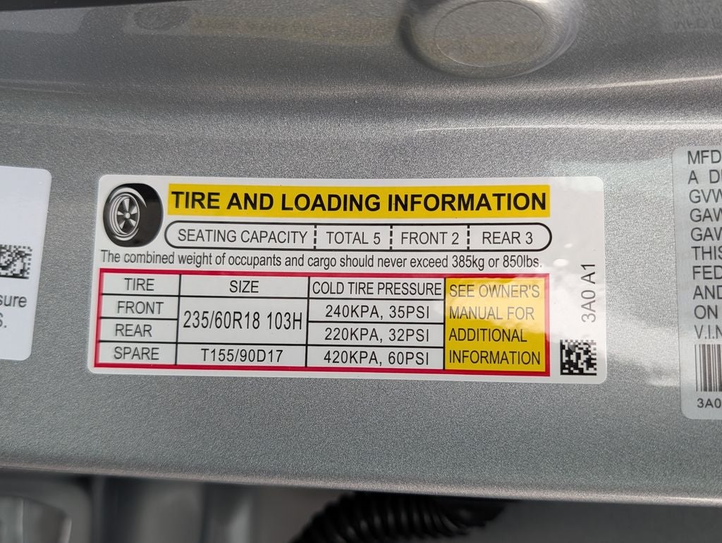 - Tires: 235/60R18 103H All-Season
