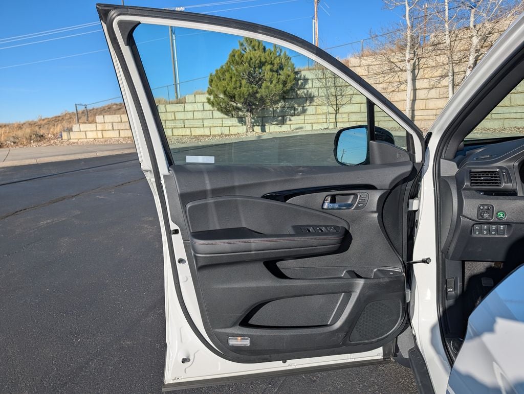 Black Leather, 4-Wheel Disc Brakes, 4.33 Axle Ratio, 8 Speakers, ABS brakes, Air Conditioning, Alloy wheels, AM/FM radio: SiriusXM, Auto High-beam Headlights, Auto-dimming Rear-View mirror, Automatic temperature control, Blind Spot Information (BSI) System warning, Bluetooth® Hands-Free Link, Brake assist, Bumpers: body-color, Compass, Delay-off headlights, Driver door bin, Driver vanity mirror, Driver's Seat Mounted Armrest, Dual front impact airbags, Dual front side impact airbags, Electronic Stability Control, Emergency communication system: HondaLink Assist, Exterior Parking Camera Rear, Four wheel independent suspension, Front anti-roll bar, Front Bucket Seats, Front dual zone A/C, Front fog lights, Front reading lights, Fully automatic headlights, Garage door transmitter: HomeLink, Heated and Ventilated Front Bucket Seats, Heated door mirrors, Heated front seats, Heated rear seats, Heated steering wheel, Honda Satellite-Linked Navigation System, Illuminated entry, Leather Seat Trim, Leather steering wheel, Low tire pressure warning, Memory seat, Navigation system: Honda Satellite-Linked Navigation System, Occupant sensing airbag, Outside temperature display, Overhead airbag, Overhead console, Panic alarm, Passenger door bin, Passenger seat mounted armrest, Passenger vanity mirror, Power door mirrors, Power driver seat, Power moonroof, Power passenger seat, Power steering, Power windows, Radio data system, Radio: 540-Watt Premium Audio System with 8 Speakers, Rear air conditioning, Rear anti-roll bar, Rear reading lights, Rear seat center armrest, Rear step bumper, Rear window defroster, Remote keyless entry, Security system, SiriusXM, Speed control, Speed-sensing steering, Split folding rear seat, Steering wheel mounted audio controls, Tachometer, Telescoping steering wheel, Tilt steering wheel, Traction control, Trip computer, Turn signal indicator mirrors, Variably intermittent wipers, Ventilated front seats, and Wheels: 18 Berlina Black Alloy.