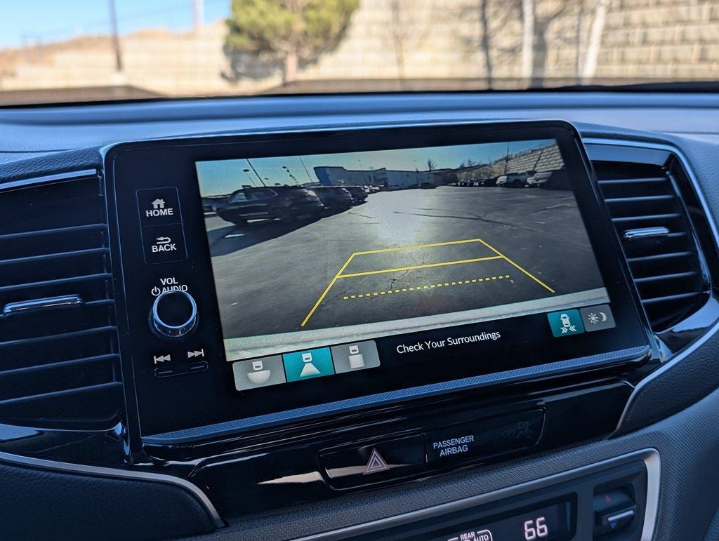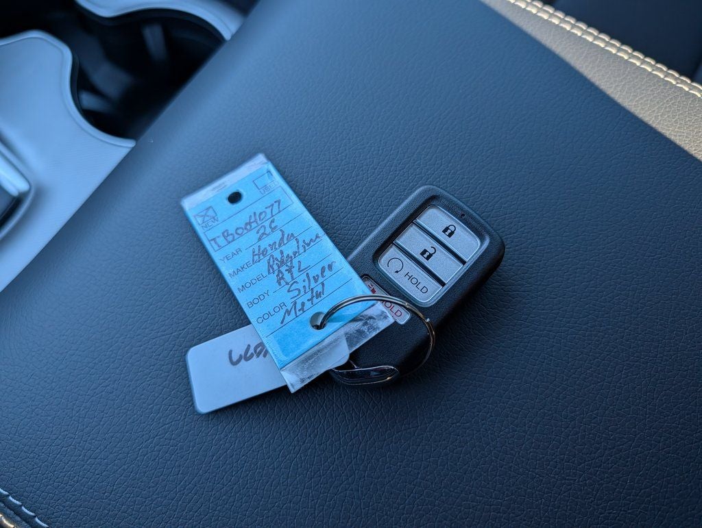 Black Leather, 4-Wheel Disc Brakes, 4.33 Axle Ratio, 7 Speakers, ABS brakes, Air Conditioning, Alloy wheels, AM/FM radio: SiriusXM, Auto-dimming Rear-View mirror, Automatic temperature control, Blind Spot Information (BSI) System warning, Bluetooth® Hands-Free Link, Brake assist, Bumpers: body-color, Compass, Delay-off headlights, Driver door bin, Driver vanity mirror, Driver's Seat Mounted Armrest, Dual front impact airbags, Dual front side impact airbags, Electronic Stability Control, Emergency communication system: HondaLink Assist, Exterior Parking Camera Rear, Four wheel independent suspension, Front anti-roll bar, Front Bucket Seats, Front dual zone A/C, Front fog lights, Front reading lights, Fully automatic headlights, Garage door transmitter: HomeLink, Heated door mirrors, Heated Front Bucket Seats, Heated front seats, Illuminated entry, Leather Seat Trim, Leather steering wheel, Low tire pressure warning, Memory seat, Occupant sensing airbag, Outside temperature display, Overhead airbag, Overhead console, Panic alarm, Passenger door bin, Passenger seat mounted armrest, Passenger vanity mirror, Power door mirrors, Power driver seat, Power moonroof, Power passenger seat, Power steering, Power windows, Radio data system, Radio: 215-Watt Audio System with 7 Speakers, Rear air conditioning, Rear anti-roll bar, Rear reading lights, Rear seat center armrest, Rear step bumper, Rear window defroster, Remote keyless entry, Security system, SiriusXM, Speed control, Speed-sensing steering, Split folding rear seat, Steering wheel mounted audio controls, Tachometer, Telescoping steering wheel, Tilt steering wheel, Traction control, Trip computer, Turn signal indicator mirrors, Variably intermittent wipers, and Wheels: 18 Pewter Gray Machine-Finished Alloy.