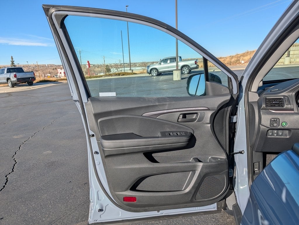 Black Cloth, 4-Wheel Disc Brakes, 4.33 Axle Ratio, 7 Speakers, ABS brakes, Air Conditioning, Alloy wheels, AM/FM radio, Automatic temperature control, Blind Spot Information (BSI) System warning, Bluetooth® Hands-Free Link, Brake assist, Bumpers: body-color, Cloth Seat Trim, Delay-off headlights, Driver door bin, Driver vanity mirror, Driver's Seat Mounted Armrest, Dual front impact airbags, Dual front side impact airbags, Electronic Stability Control, Emergency communication system: HondaLink Assist, Exterior Parking Camera Rear, Four wheel independent suspension, Front anti-roll bar, Front Bucket Seats, Front dual zone A/C, Front fog lights, Fully automatic headlights, Illuminated entry, Low tire pressure warning, Occupant sensing airbag, Outside temperature display, Overhead airbag, Overhead console, Panic alarm, Passenger door bin, Passenger seat mounted armrest, Passenger vanity mirror, Power door mirrors, Power steering, Power windows, Radio data system, Radio: 215-Watt Audio System with 7 Speakers, Rear air conditioning, Rear anti-roll bar, Rear reading lights, Rear seat center armrest, Rear step bumper, Rear window defroster, Remote keyless entry, Security system, Speed control, Speed-sensing steering, Split folding rear seat, Steering wheel mounted audio controls, Tachometer, Telescoping steering wheel, Tilt steering wheel, Traction control, Trip computer, Variably intermittent wipers, and Wheels: 18 Shark Grey Alloy.