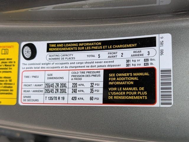 - Tires: 245/45R20 Fr & 265/45R20 Rr Perf Non-RFT