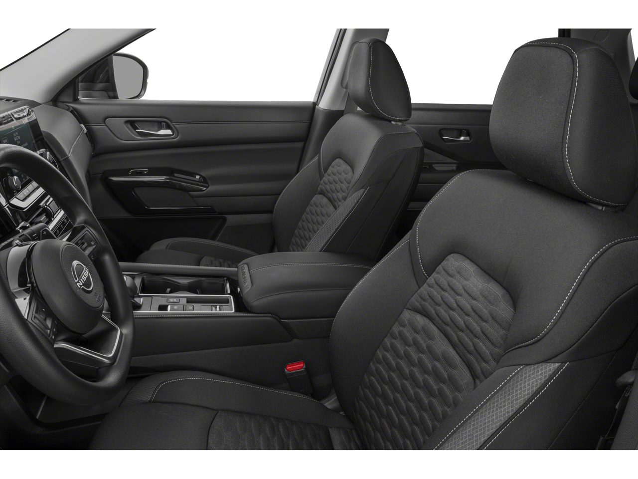 Boasting a spacious interior, the Pathfinder S offers seating for up to eight passengers, making it the perfect choice for families or those who need to transport large groups. The cloth seating surfaces provide comfort and durability, while the split-folding rear seats and reclining third-row seat offer flexibility to accommodate your cargo and passenger needs.