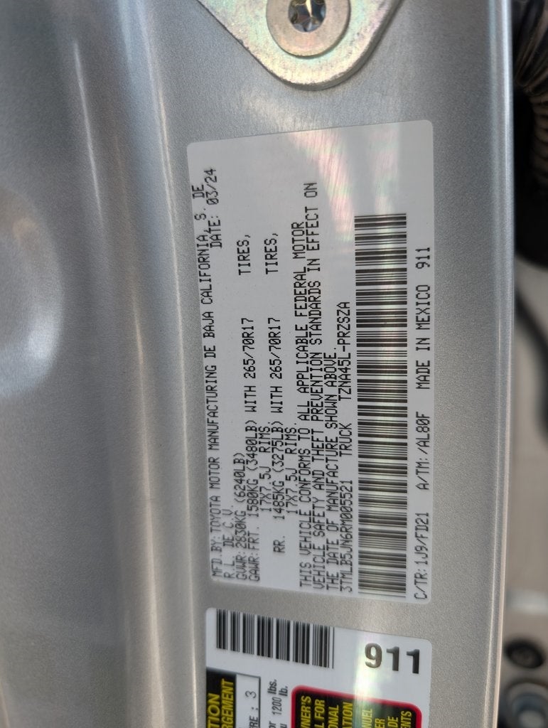 - Vehicle Name: Toyota Tacoma 4WD
