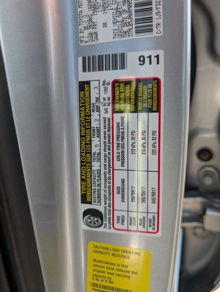 - Spare Tire Size: Full-Size